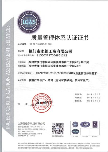我們通過ISO9001:2015質(zhì)量管理、ISO14001:2015環(huán)境管理體系認(rèn)證,ISO13485:2016醫(yī)療器械質(zhì)量體系認(rèn)證,我們在吸塑行業(yè)領(lǐng)先使用萬級無塵車間,整個車間配備中央空調(diào)、防靜電地板、智能換氣設(shè)計。